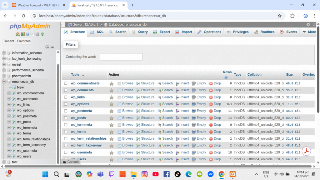 “WordPress was installed locally using XAMPP / WAMP / LocalWP (whichever you used). A local database was created in phpMyAdmin, and WordPress files were configured to connect to it. This environment allows plugin development, theme customization, and testing without affecting a live site.”