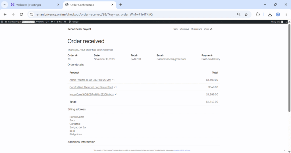 The website was deployed using Hostinger by uploading WordPress files, configuring the database, and connecting the domain. After installation, plugins and themes were configured.