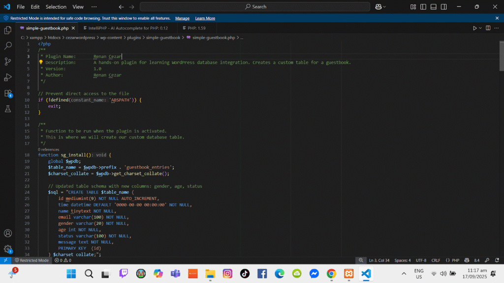 This custom Guestbook plugin allows visitors to submit messages which are stored in the WordPress database. I created a custom table during plugin activation and displayed the entries using a shortcode.