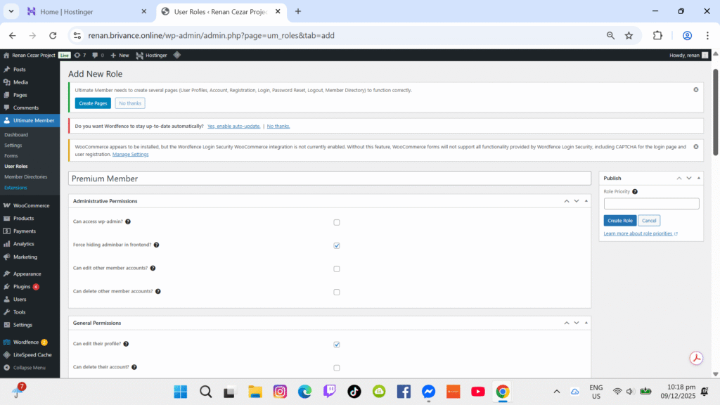Ultimate Member was used to manage user roles and restrict content visibility based on permissions.